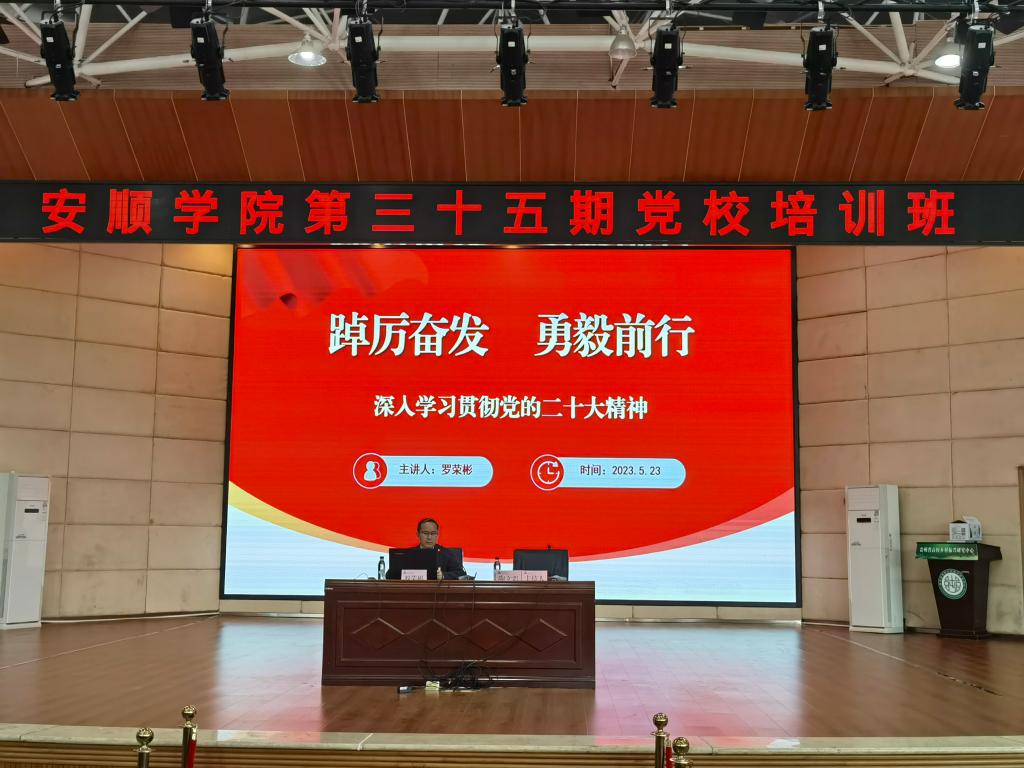 2023年5月23日,安顺学院党委书记罗荣彬为第35期党校培训班学员上党课。授课题目为《踔厉奋进 勇毅前行——全面贯彻党的二十大精神》,学校党委副书记陶文彩主持。