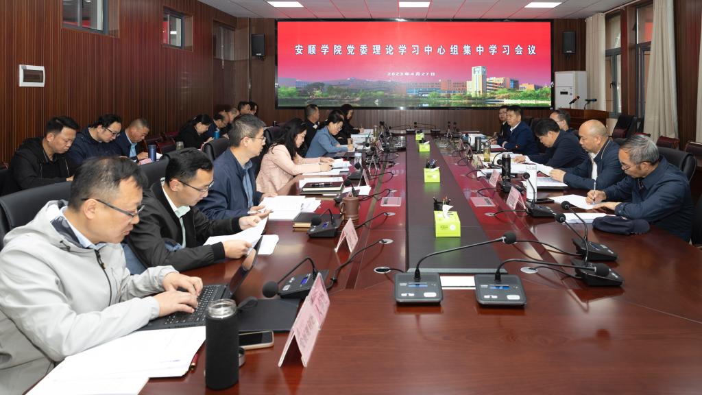 2023年4月27日,安顺学院召开党委理论学习中心组集中学习会议。校领导班子成员及各基层党委书记,各职能部门主要负责人参加学习。安顺学院党委书记罗荣彬主持学习并提出要求。