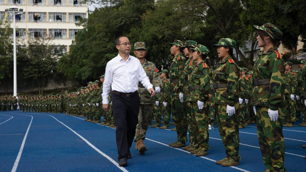 安顺学院党委书记罗荣彬检视由2023级参训学生组成的27支连队