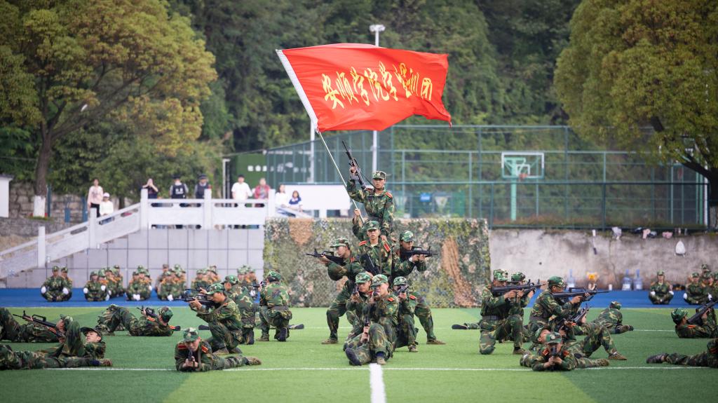 分列式后,参训连队进行了擒敌训练和战术训练汇报。“军味”十足的汇报表演,赢得了现场阵阵热烈的掌声,展现了安院学子的勃勃生机。