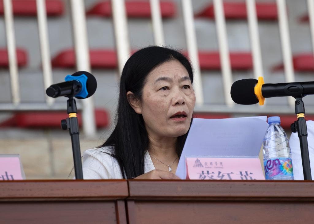 安顺学院党委委员、纪委书记、监察专员蔡红英宣读标兵学员和优秀学员、优秀通讯员、优秀教官表彰名单