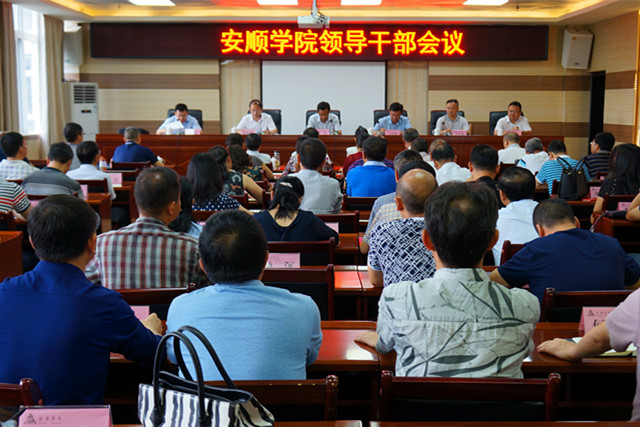 2018年8月9日下午,安顺学院召开领导干部会议,省委组织部副部长张新,安顺市委常委、市委组织部部长王勋国,省委组织部干部四处处长刘德忠,安顺市委组织部常务副部长黄玮到安顺学院宣布省委关于吴次南等同志任免职的通知。安顺学院党委书记罗荣彬,安顺学院党委副书记陶文彩,安顺学院党委委员、副院长熊国敏,安顺学院党委委员、副院长王芳恒,安顺学院党委委员、副院长令狐荣涛,安顺学院党委委员、纪委书记马力,安顺学院党委委员、副院长郭本华,以及学校副处级以上领导干部参加会议。会议由安顺学院党委书记罗荣彬主持。