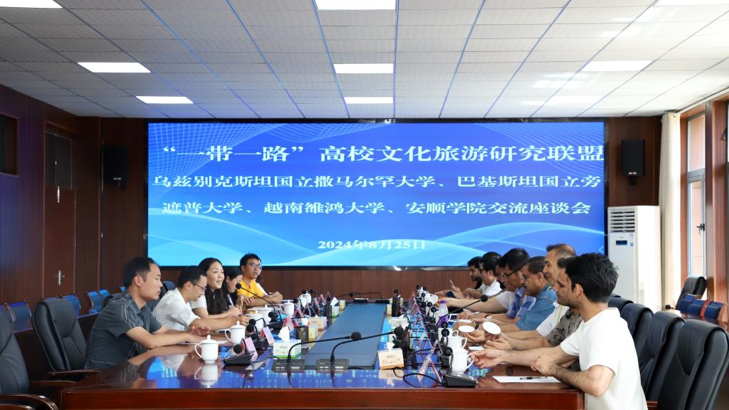 8月25日,正值“一带一路”高校文化旅游研究联盟成立之际,来自乌兹别克斯坦国立撒马尔罕大学、巴基斯坦国立旁遮普大学、越南雒鸿大学等多国高校学者到我校进行学术交流。安顺学院党委委员、副校长殷红敏出席座谈会,校团委、旅游学院、人文学院等部分教师参加座谈会。