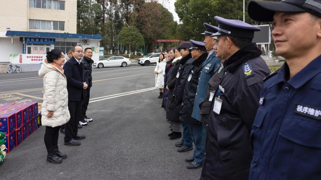 新春佳节来临之际,2024年2月9日上午,安顺学院党委书记罗荣彬看望慰问寒假坚守在岗位上的后勤处、保卫处教职工,党政办公室、党委宣传部、保卫处、后勤处等有关部门负责同志陪同慰问。