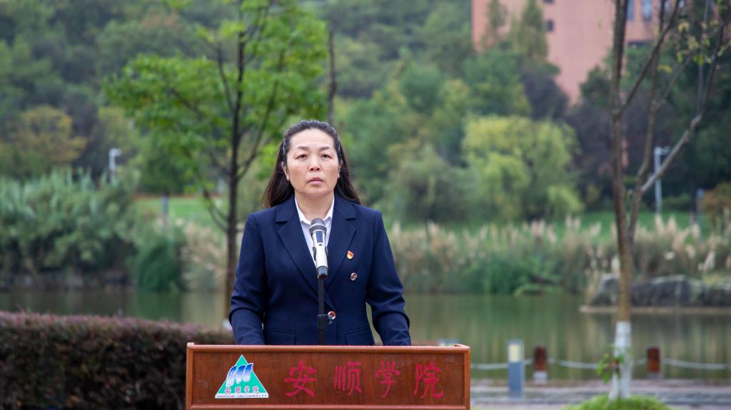 安顺学院党委委员、副校长殷红敏主持升国旗仪式