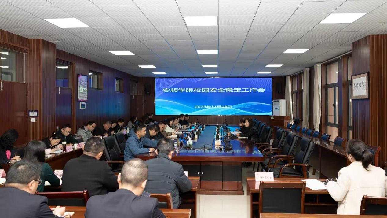 2024年11月18日上午,安顺学院2024年校园安全稳定工作部署会在安道楼505会议室召开。安顺学院党委书记罗荣彬,党委委员、副校长殷红敏及各部门(学院)主要负责人参会,会议由殷红敏主持。会议旨在深入贯彻落实教育部和省教育厅关于安全的指示要求,深刻汲取江苏宜兴无锡工艺职业技术学院重大事件教训,举一反三,坚持问题导向,全面分析我校安全稳定形势,从源头上加强风险防控,全力维护当前安全稳定的教育教学环境。