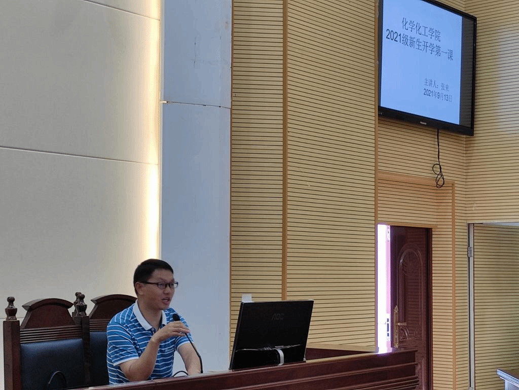 2021年9月13日下午,安顺学院副校长、教授张来在模拟法庭为化学化工学院2021级新生讲“开学第一课”。化学化工学院党委书记喻辉、化学化工学院辅导员、2021级新生班班主任、2021级全体新生以及专升本学生200余人听课。