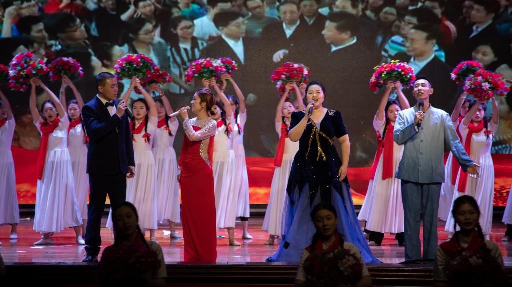 在彩排现场,曾丽一行认真观看了演员们的表演。