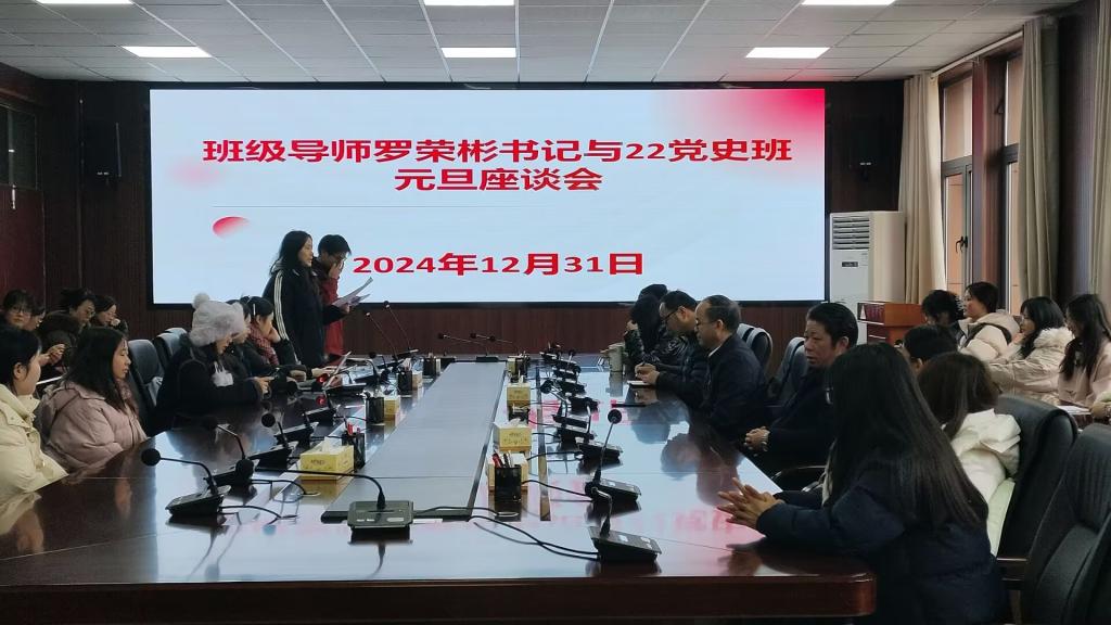 12月31日,安顺学院党委书记、2022级中国共产党历史班级导师罗荣彬参加2022级党史班级元旦座谈会。马克思主义学院班子成员和部分老师参加了会议,会议由朱周同学和王国鹏同学主持。
