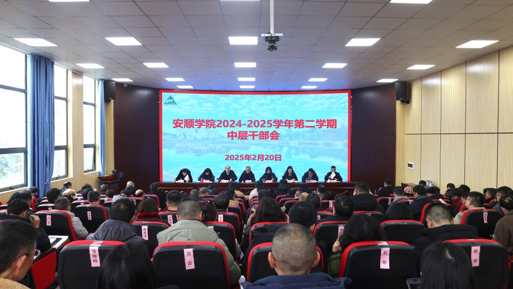 2025年2月20日下午,安顺学院2024—2025学年度第二学期中层干部大会在安道楼二楼阶梯教室召开。安顺学院校领导,全体正、副处级干部参加会议。会议由安顺学院党委副书记李琳主持。