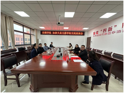 10月23日下午,加拿大圣力嘉学院国际部部长黄小川等一行4人到安顺学院进行交流座谈。安顺学院党委委员、副校长殷红敏出席座谈会,教务处、对外交流与合作处、物电学院负责人参加座谈。