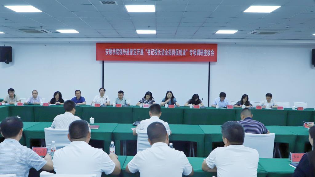 为贯彻落实教育部及省教育厅关于开展高校书记校长访企拓岗促就业专项行动要求,推进我校毕业生多维度、高质量就业,进一步优化我校人才培养方案,2022年7月1日,安顺学院党委委员、纪委书记 监察专员蔡红英,党委委员、副校长殷红敏,党委委员、统战部部长、教务处处长杜志明带队到普定县开展专项调研,实地考察普定县第二中学、第三中学,并召开座谈会。普定县委常委、副县长王泽勇出席座谈会,普定县教育和科技局党委委员、副局长田庆益主持会议。