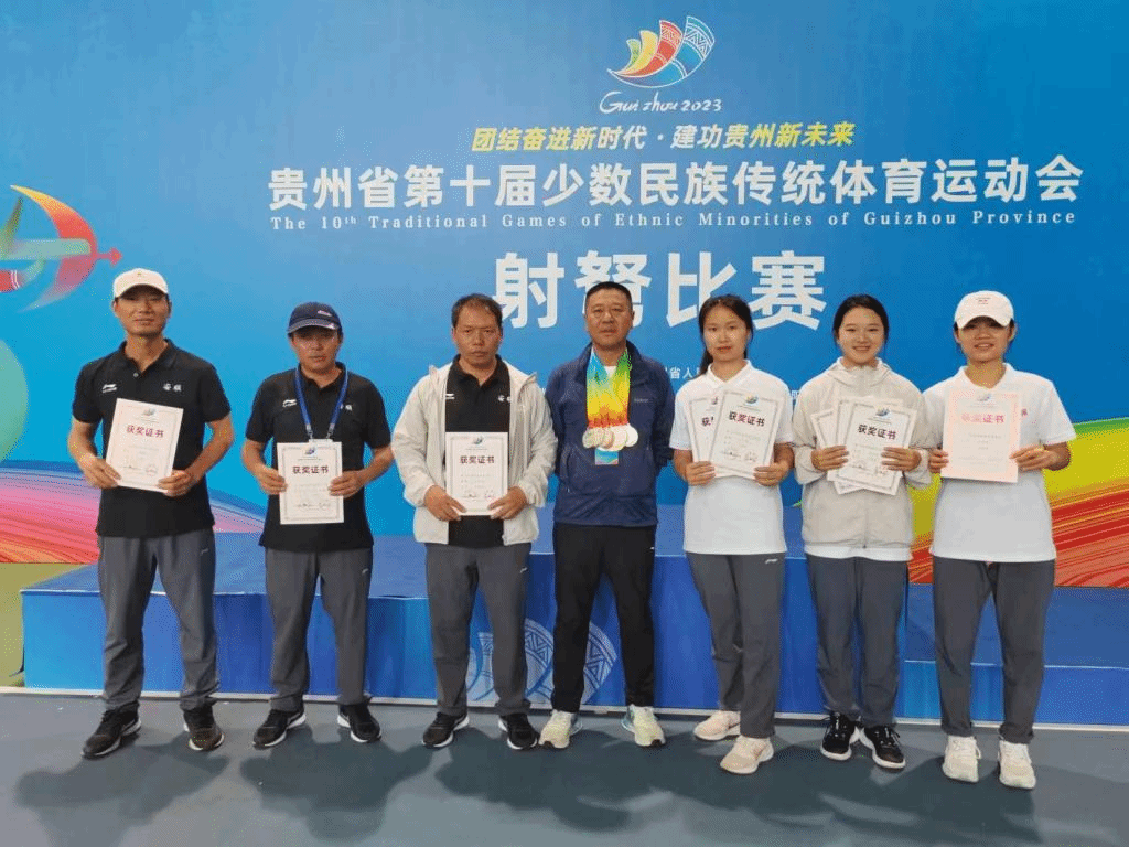在运动会上,运动健儿不负众望、奋勇争先,取得了2个一等奖、17个二等奖、22个三等奖的好成绩。其中,蹴球队获混双一等奖(金牌)、女双二等奖(银牌)、男双三等奖(铜牌)。射弩队获传统弩跪姿一等奖(金牌)、3个三等奖、传统弩混合团体二等奖、标准弩混合团体二等奖、传统弩立姿3个二等奖、1个三等奖、标准弩跪姿1个二等奖、2个三等奖、标准弩立姿1个二等奖、2个三等奖。押加队获2个二等奖(76Kg、55Kg)、2个三等奖(76Kg、68Kg)、板鞋队获1个二等奖(女子2x100米接力)、4个三等奖(女子100米、男子100米,4x100米接力)、高脚竞速队获2个三等奖(女子2x200m接力、4x100m混合接力)。陀螺队获6个三等奖(男团、女团、男双、女双、男单、女单)。表演项目获2个三等奖(布艺昂缪、花样跳绳)。