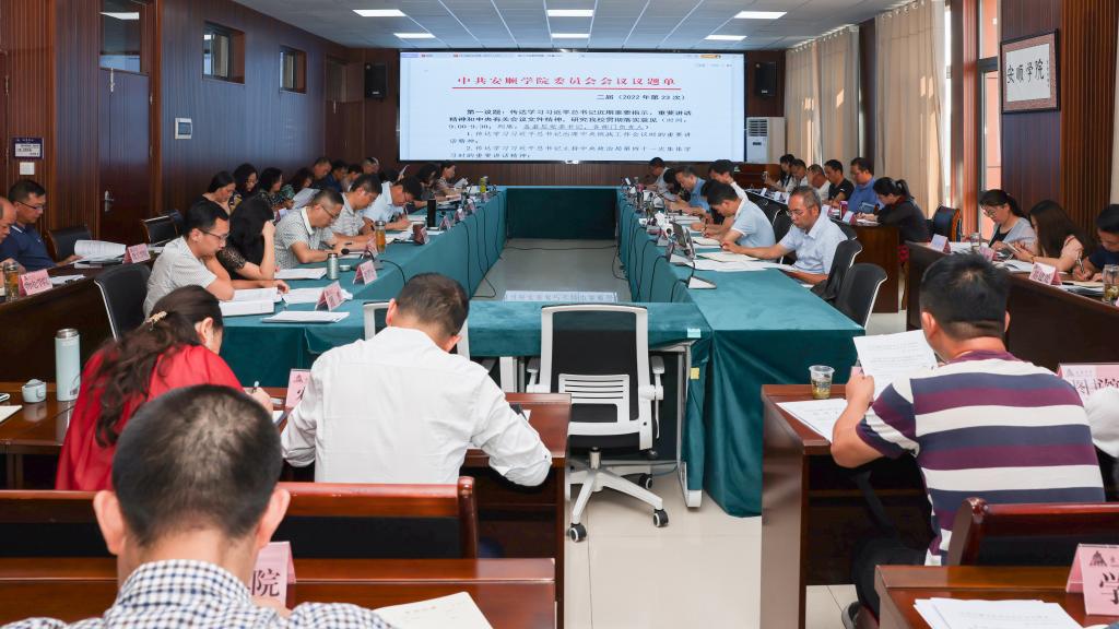 2022年8月9日上午,安顺学院召开党委会传达学习贯彻习近平总书记近期重要指示、重要讲话精神,校领导班子成员及各职能部门主要负责人,各基层党委书记参加学习。安顺学院党委书记罗荣彬主持学习并提出要求。