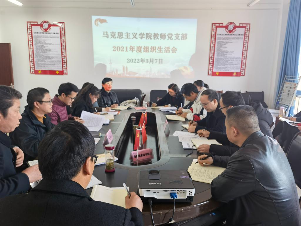 2022年3月7日,马克思主义学院教师党支部召开2021年度组织生活会,马克思主义学院党委班子成员以普通党员身份参加此次会议,安顺学院党委书记罗荣彬到会指导。