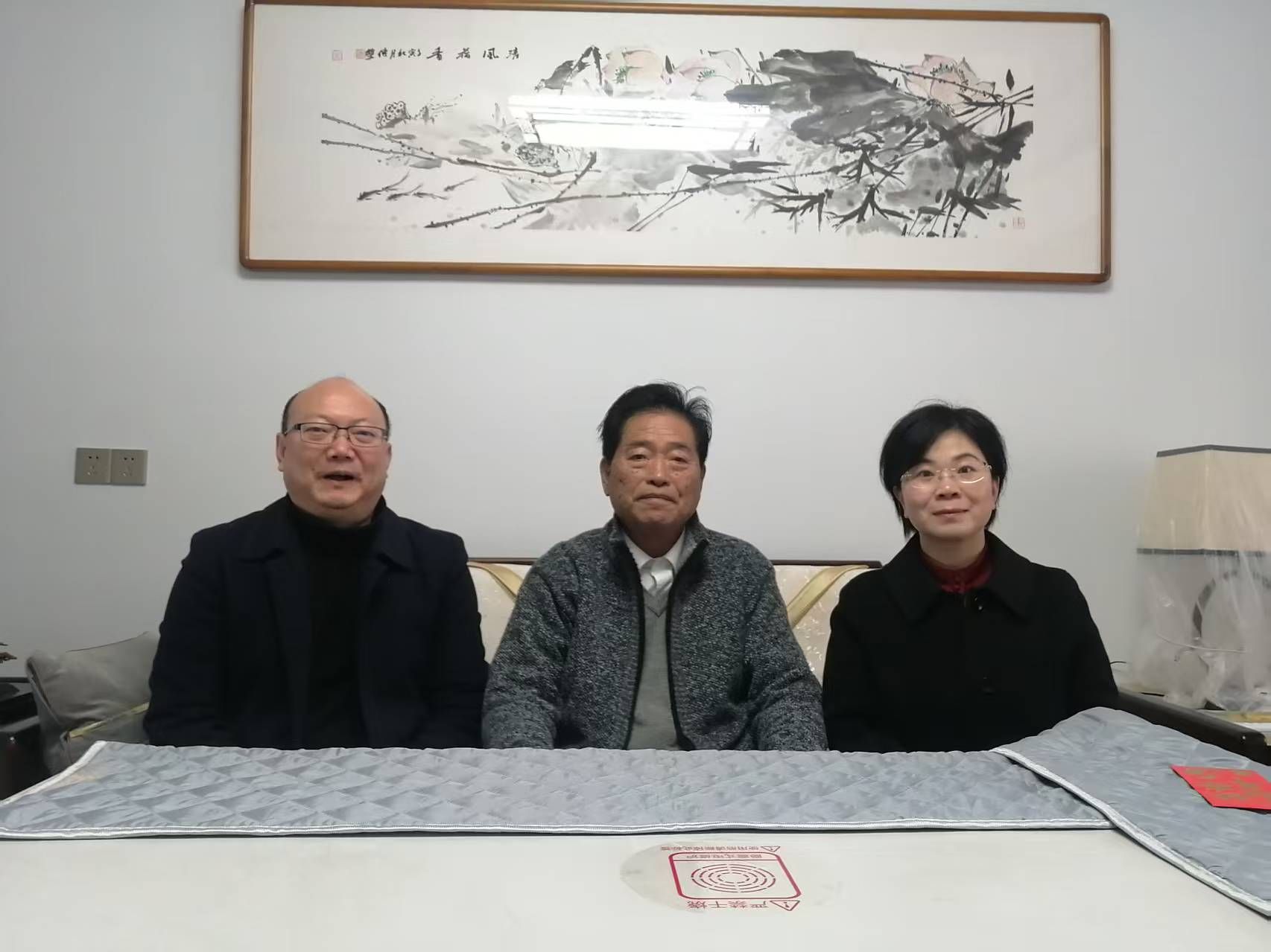 安顺学院党委书记程绪权(左)、副校长张来(右)走访慰问原安顺师专党委书记屠声风(中)