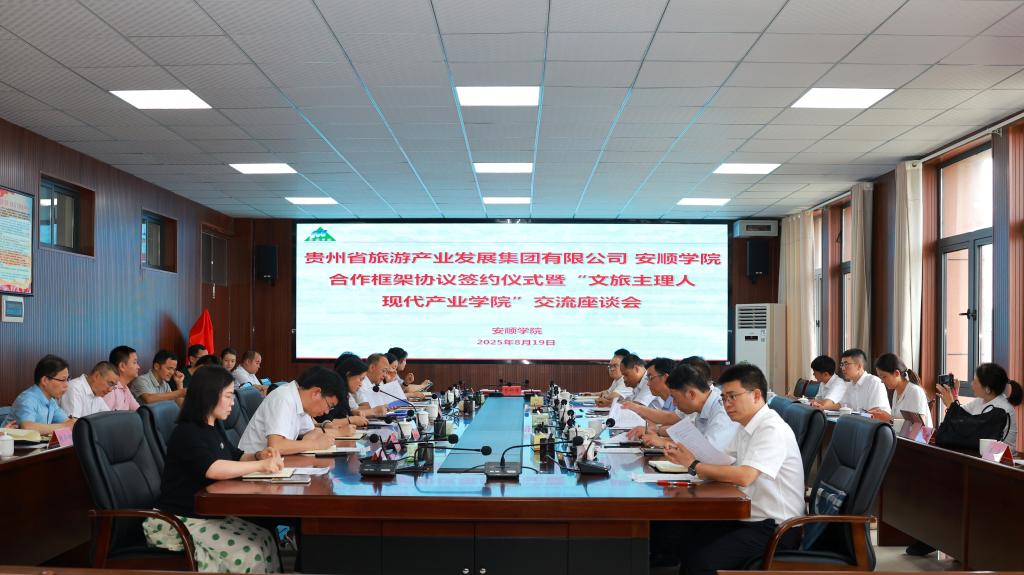 2025年8月19日下午,贵州省旅游产业发展集团有限公司与安顺学院在安顺学院安道楼第一会议室签订合作框架协议并召开“文旅主理人现代产业学院”交流座谈会。