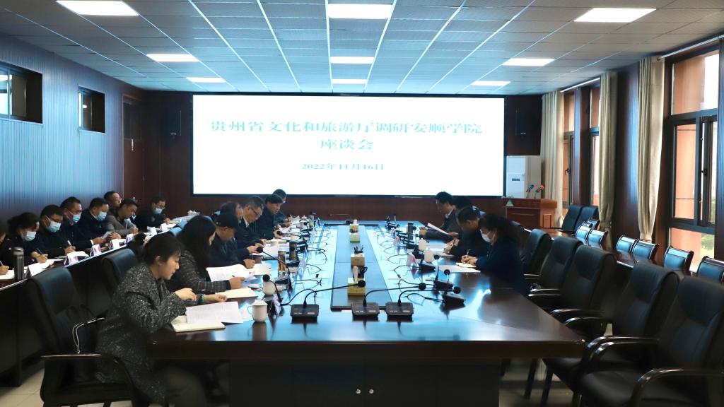 贵州省文化和旅游厅、安顺市政府办有关人员陪同调研,安顺学院有关领导及部门负责人参加座谈会。(文图:李尧睿)