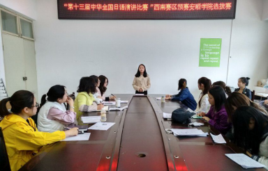 2018年4月18日下午,外国语学院在新教学楼七楼会议室举行“第十三届中华全国日语演讲比赛”西南赛区预赛安顺学院选拔赛。外国语学院2016级日语专业同学参加演讲比赛。