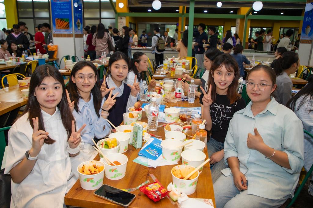 典礼结束后,毕业生们前往思源居篮球场参加了由学校精心准备的冷餐会。菜品以冷食为主,种类丰富,色味俱全,还有各种饮品供毕业生们选择。