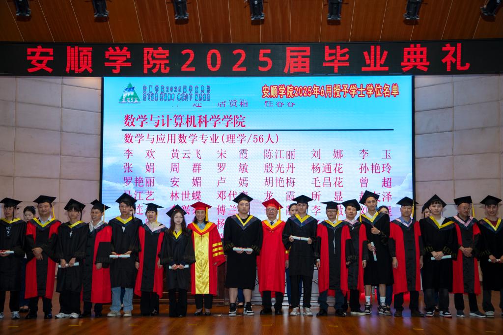伴随着《You Raise Me Up》的背景音乐,安顺学院党委委员、副校长韦英宣读省校两级优秀毕业生表彰名单。安顺学院党委委员、副校长殷红敏宣读毕业证、学士学位获得者名单。