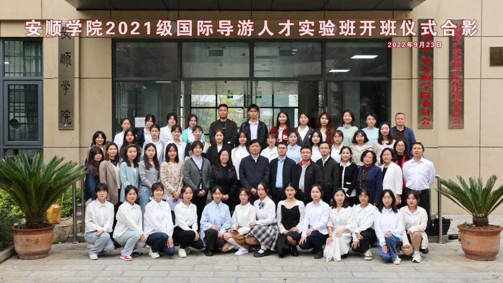 9月23日下午,2021级国际导游人才实验班开班仪式在安顺学院安道楼第一会议室隆重举行,党委副书记、校长陈云坤,副校长张来,党委委员、教务处处长杜志明,宣传部、发规处、团委、人事处(教师工作处)、计财处、学生资助中心、旅游学院负责人,外国语学院全体班子成员;2021级国际导游人才实验班(下文简称“实验班”)的任课教师与学生参加了开班仪式。