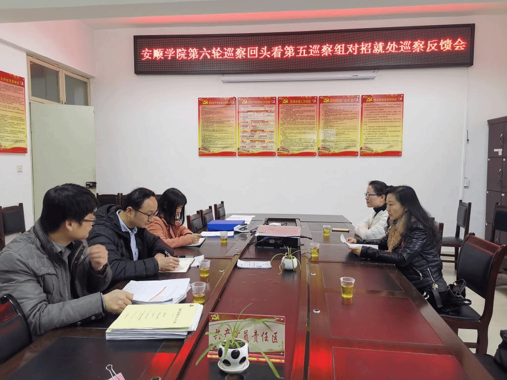 根据校党委巡察工作统一部署,2019年11月1日至12月1日,学校党委派出6个巡察组对机关党委组织部、党政办公室、宣传部、学报编辑部、旅游与文化产业研究中心、实验管理中心、招生与就业指导处、国资处、审计处9个党支部开展了巡察“回头看”工作。各巡察组认真贯彻中央巡视巡察工作方针,按照《安顺学院党委巡察工作办法》,坚决落实政治巡察要求,紧紧围绕党的政治建设、思想建设、组织建设、作风建设、纪律建设和深入推进反腐败斗争等方面,从严从实开展巡察监督检查,顺利完成了第六轮巡察“回头看”工作。