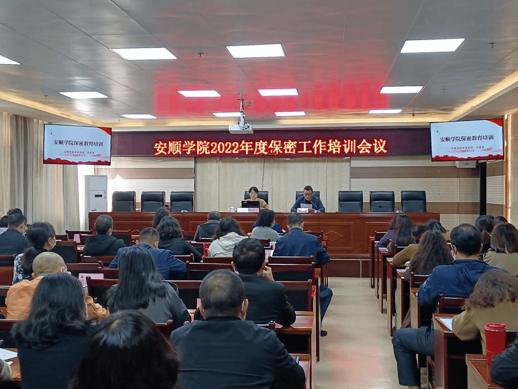 2022年11月21日下午,安顺学院召开2022年度保密工作培训会议,学校党委副书记陶文彩出席,各部门、各学院分管保密工作领导和专职保密工作员参加会议。会议由党政办公室副主任王智勇同志主持。