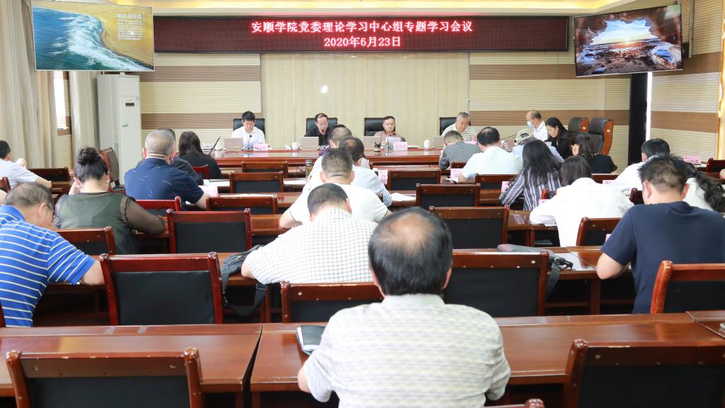2020年6月23日,安顺学院党委书记罗荣彬主持召开安顺学院党委理论学习中心组专题学习会议,传达学习《民法典》、习近平总书记在全国宣传思想工作会议上的重要讲话精神、习近平总书记在全国网络安全和信息化工作会议上的重要讲话精神、习近平总书记在党的十八大以来关于安全生产、减灾救灾和应急救援工作的重要指示批示精神等会议和文件精神。