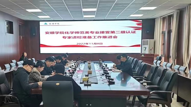 2022年11月8日上午,安顺学院校长、党委副书记陈云坤在安道楼第一会议室组织召开化学师范类专业接受国家二级认证专家进校准备工作推进会。