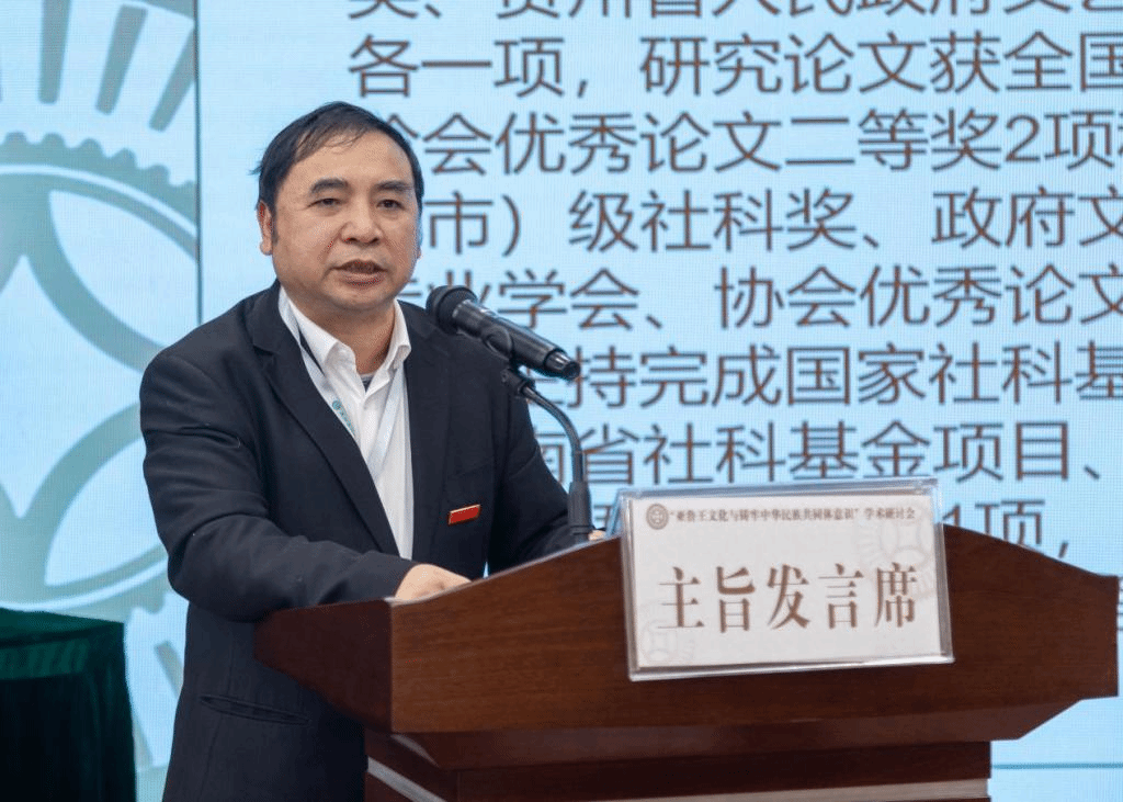 安顺学院党委书记罗荣彬致欢迎辞,指出亚鲁王文化是中华优秀传统文化的重要组成部分,我们要全面贯彻落实党的二十大精神,学深悟透习近平总书记关于“铸牢中华民族共同体意识”“传承中华优秀传统文化”的核心要义,厚植培育中华民族共同体意识的文化基因,把握好各民族优秀传统文化和中华文化的关系,在全面建设社会主义现代化国家新征程中,以中华优秀传统文化的传承和弘扬推动铸牢中华民族共同体意识。