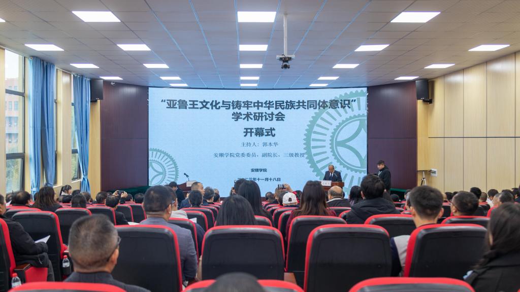 2023年11月18日,“亚鲁王文化与铸牢中华民族共同体意识”学术研讨会在安顺学院成功举办。来自安顺市政府相关部门、省内外高校、科研机构、学术期刊、文化界、新闻媒体界、企业界以及各级苗学会的代表共计120多人参会。会议聚焦铸牢中华民族共同体意识主线,旨在为亚鲁王文化的传承与深入研究建言献策、贡献力量。