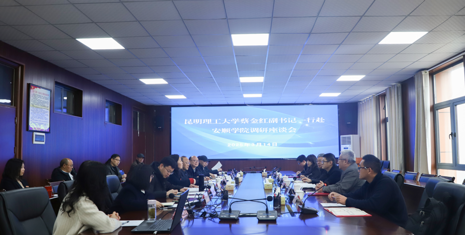 3月14日上午,昆明理工大学党委副书记蔡金红,交通工程学院党委书记张强,人才工作办公室副主任兼人事处(教师工作部)副处(部)长张硕,信息工程与自动化学院博士生导师、教授刘增力,交通工程学院正高级实验师申江卫,民航与航空学院副教授杨剑挺到安顺学院调研。