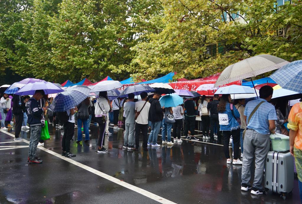 虽然大雨将学生志愿者衣服淋湿,但是志愿者们的热情丝毫不减。在迎新过程中,志愿者们在校园忙碌奔走,为新生指路,帮助新同学搬行李,他们表示,虽然很忙很累,但是每当看到满眼好奇的师弟师妹,想起曾经刚入学的自己,心里倍感愉悦。