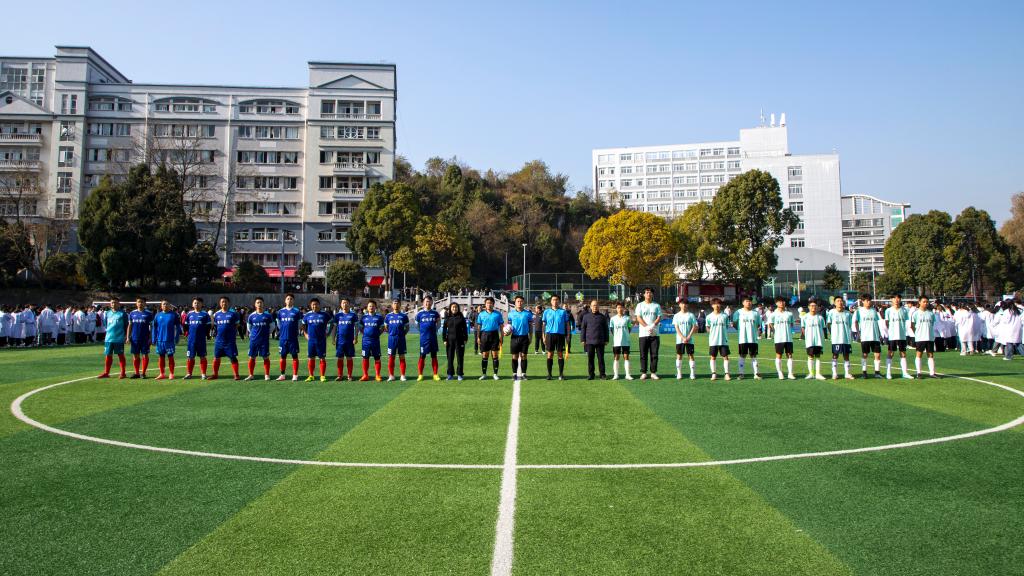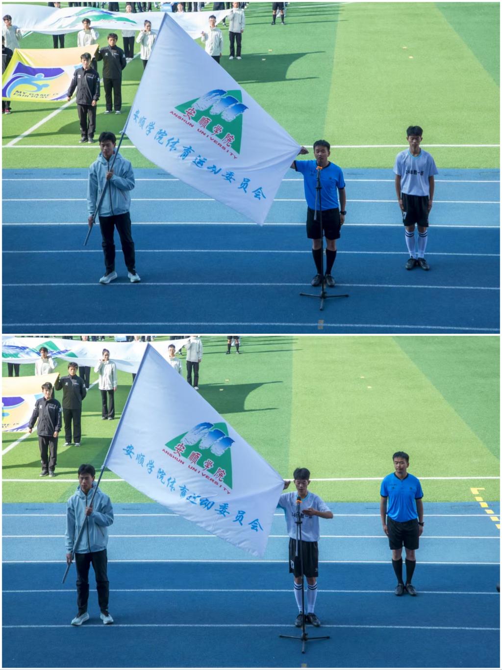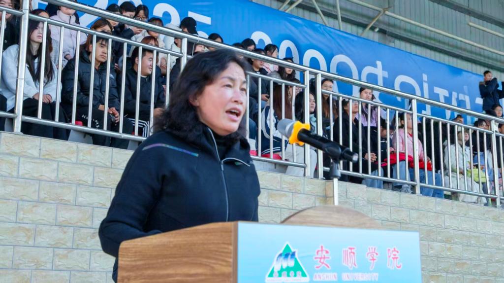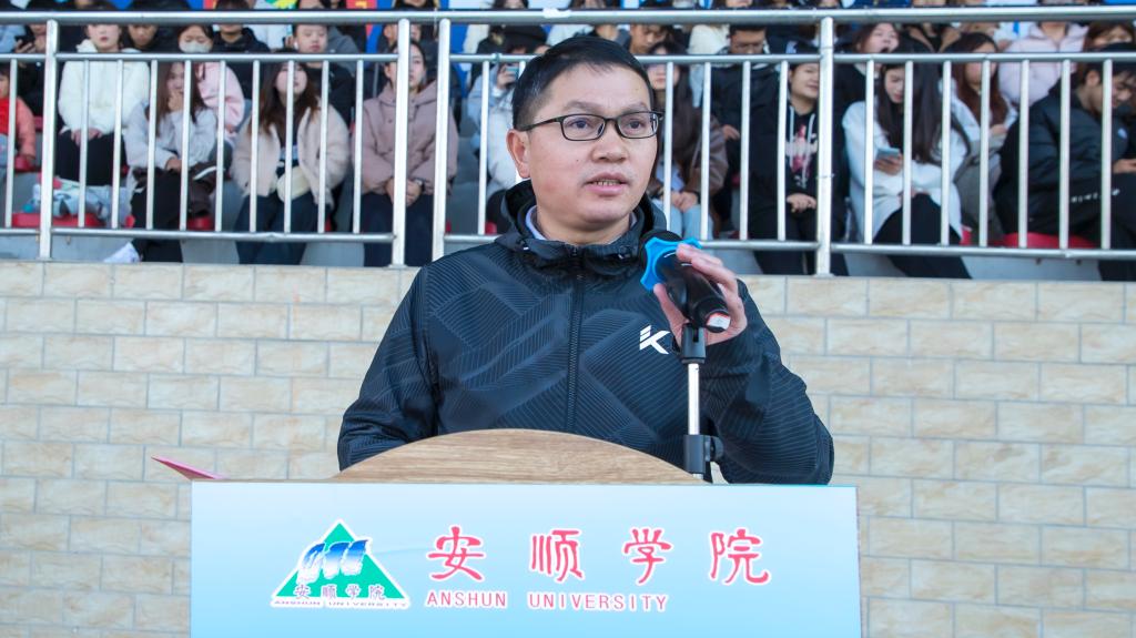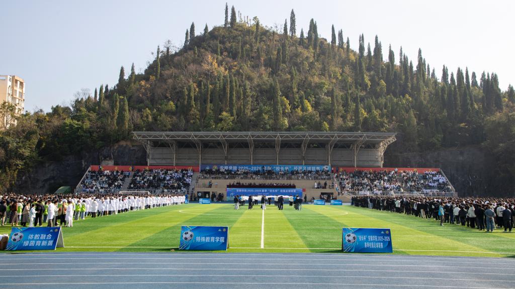 冬日暖阳洒满绿茵场,青春激情点燃校园魂。2025年12月1日下午15:00,安顺学院2025-2026赛季“校长杯”校园足球联赛开幕式在学校运动场隆重举行。校党委书记程绪权,校长曾丽,党委副书记李琳、副校长孙向阳、学校党政办,宣传部、教务处、团委,学工部负责人,各二级学院党委书记、院长以及全体参赛运动员、裁判员和师生代表近4500人齐聚一堂,共同见证这场呼应全省赛事号召、融合体育精神与育人使命的校园盛会,开幕式由副校长张来主持。