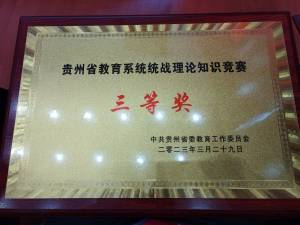 2023年3月29日,“同心跟党走 奋进新征程”全省教育系统统战理论知识竞赛在贵州大学西校区举行。竞赛分为初赛及决赛两个阶段。初赛以现场闭卷答题形式进行,全省各市州委教育工委、各省属高校共25支参赛队伍同时参加;决赛采用现场知识抢答形式,由初赛评选出的12支参赛队伍同时参加比赛,评选出一等奖2名、二等奖4名、三等奖6名。安顺学院外国语学院蔡群老师率领市委教育工委教师代表队参赛并荣获三等奖。