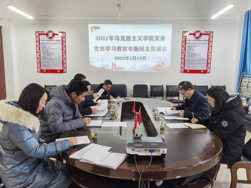 2022年1月19日,马克思主义学院党委召开党史学习教育专题民主生活会,安顺学院党史学习教育第一巡回指导组组长、校党委书记罗荣彬到会指导,马克思主义学院党委领导班子成员、党员教师代表参加会议。会议由马克思主义学院党委书记王罡主持。
