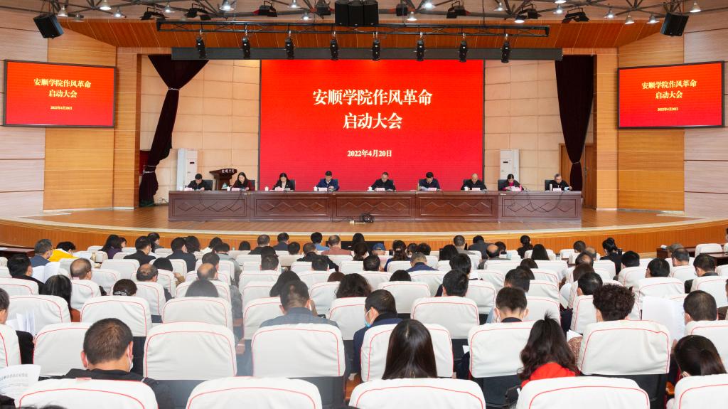 为进一步贯彻落实好中央、省委、市委和省委教育工委关于作风建设的有关要求,学习贯彻全市作风革命启动大会精神,对干部作风建设再重申、再强调、再部署,动员全校上下聚焦作风抓落实,在全校上下营造同心同德干事业、攻坚克难抓落实的良好氛围,4月20日上午,安顺学院在学术报告厅召开作风革命启动大会。学校领导班子成员以及全体处、科级干部300余人参加会议。