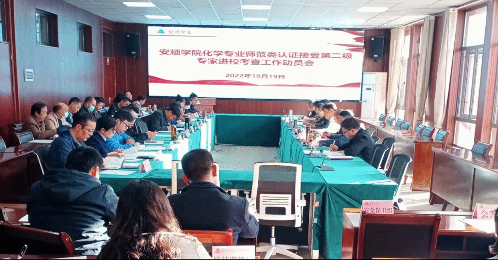 2022年10月19日上午,安顺学院在安道楼五楼第一会议室召开了2022年下半年化学专业师范类第二级认证专家进校考查工作动员会。