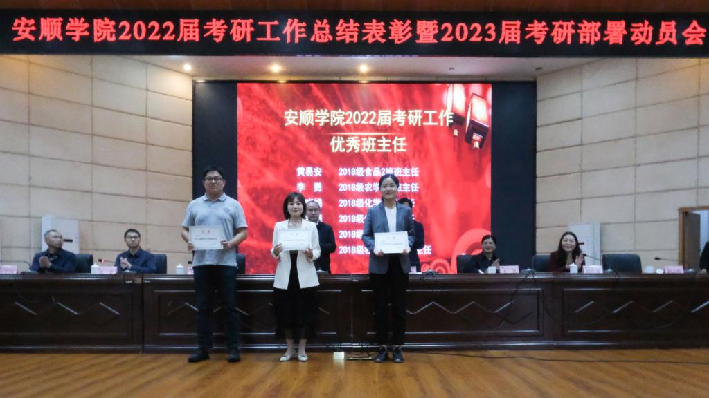 会议就安顺学院2022届考研工作进行总结,并对2022届考研工作优秀组织单位与个人进行表彰。农学院党委书记施渺筱、体育学院院长邓文红、化学化工学院班主任张晓娟、政法学院考生熊润华作为优秀代表进行交流发言。他们就考研工作的经验和举措进行了分享、对存在的问题进行了深入分析、并对下一步考研工作做了规划。