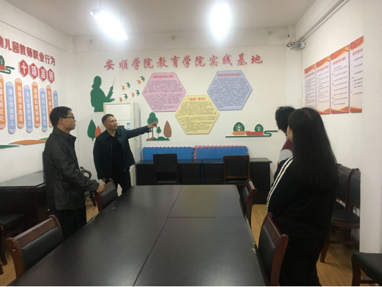 为深入了解学前教育专业师范生教育实习情况,加强对实践就业基地工作的指导。2021年10月19日上午,安顺学院副校长张来在教务处副处长彭瑛、教育学院副院长李勇和办公室主任刘顺华陪同下,到教育学院实践就业基地——安顺市第一幼儿园、安顺市实验学校幼儿园调研基地建设工作。