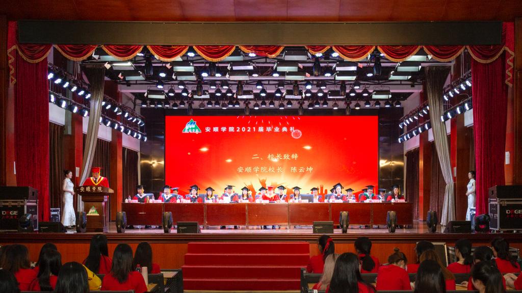 端午的粽香还未完全散去,夏天的蝉鸣还未完全响起,此时此刻,在安院礼堂,离歌再一次为远行的少年们响起,6月22日早晨8时30分,安顺学院2021届毕业典礼在我校礼堂隆重举行。2693名毕业生代表及其亲友、老师共同见证这一神圣的时刻。安顺学院校领导、各二级学院院长身着学位服向毕业生送出真挚的离别祝福,并为他们拨穗、授予学位。这场毕业典礼有初心、有憧憬、有不舍、有回忆、有待弥补的遗憾、更有跃然的希冀……