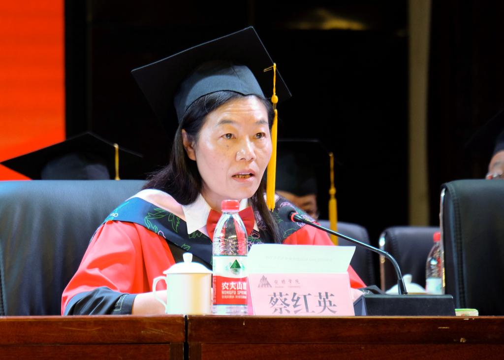 教务处副处长、旅游学院2017级文化产业管理班班主任彭瑛教授作为教师代表祝福同学们在新征途中乘风破浪揽星河,扬帆远航破楼兰,时刻谨记着“安道乐学顺理笃行”的校训。