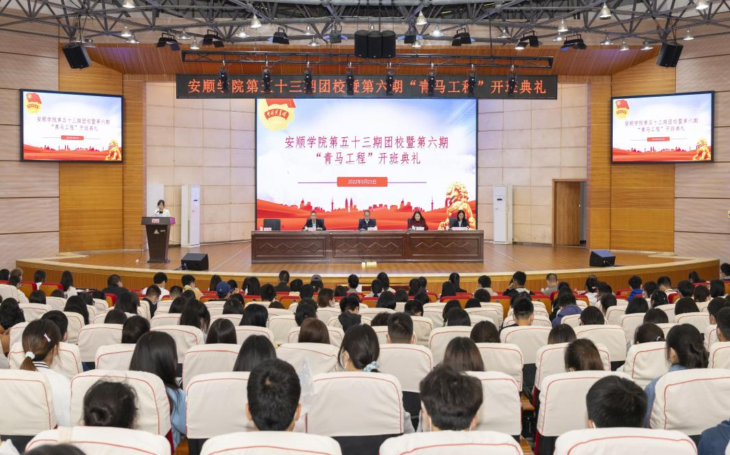 2022年5月23日下午,安顺学院第五十三期团校暨第六期“青马工程”培训班开班典礼在学术报告厅举行。安顺学院党委书记罗荣彬,安顺学院党委委员、副校长、团校校长殷红敏,校团委全体工作人员,团校各学习班班长,第五十三期团校暨第六期“青马工程”培训班学员代表参加开班典礼。开班典礼由校团委副书记谌兰樱主持。