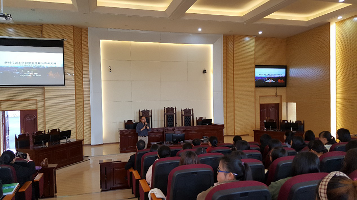 2018年12月3日下午,贵州省国土资源勘测规划研究院高级工程师周华博士在安顺学院为资源与环境工程学院师生作为题为“新时代国土空间规划逻辑与贵州实践”的讲座。资源与环境工程学院副院长李仕蓉、王家录及土地资源管理专业全体师生聆听讲座。