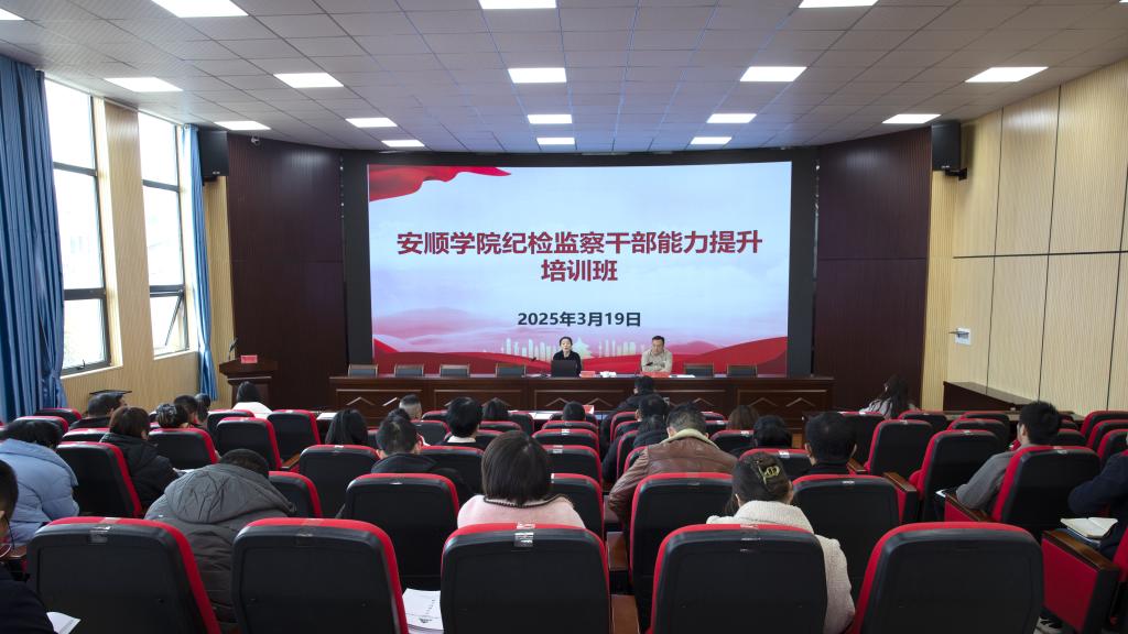 3月19日,安顺学院举办2025年纪检监察干部能力提升培训班。安顺学院党委委员、纪委书记、监察专员蔡红英出席,校纪委委员、学校纪委监察专员办全体干部、基层纪检委员共60余人参加培训。