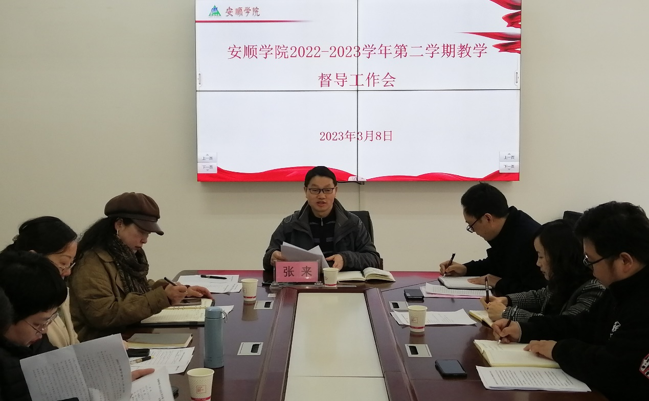 3月8日上午,安顺学院在博学楼六楼会议室召开2022-2023学年第二学期教学督导工作会。安顺学院副校长张来出席会议,教务处负责人、全体校级督导、教学质量监测与评估中心全体成员参加会议。会议由张来主持。