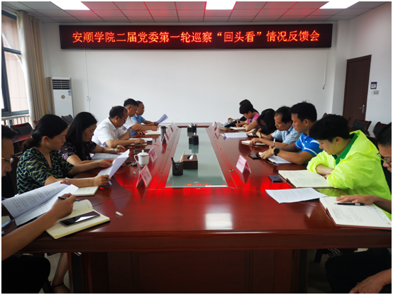 根据安顺学院党委相关工作要求,7月14日,二届党委第一轮巡察“回头看”情况反馈会在安道楼第二会议室召开。