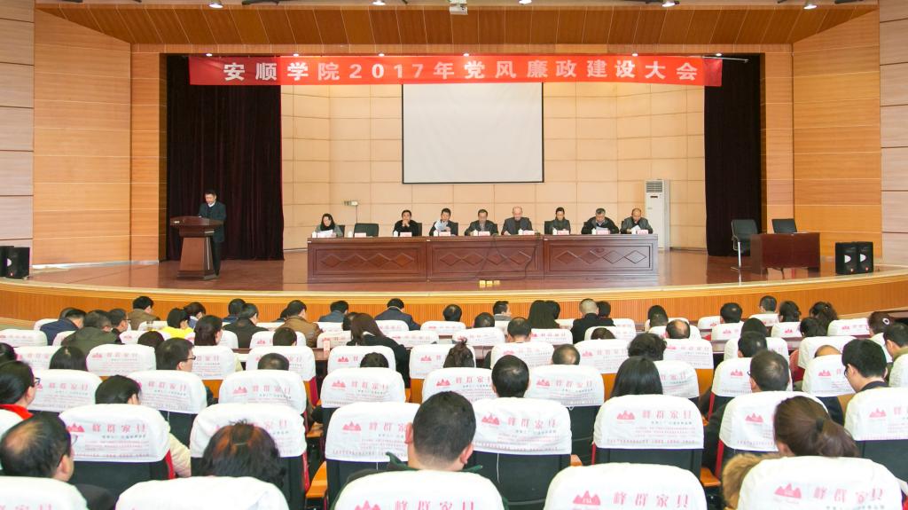 3月13日下午,安顺学院党风廉政建设大会在学术报告厅召开。安顺学院党委领导班子全体成员,全校副科级以上干部,纪委(监察室)、工会、人事处、教师工作处、学生处、教务处、招就处、学生资助管理中心、科研处、审计处、计财处、国资处、基建处、后勤处全体工作人员参加会议。会议由安顺学院院长刘雷主持。