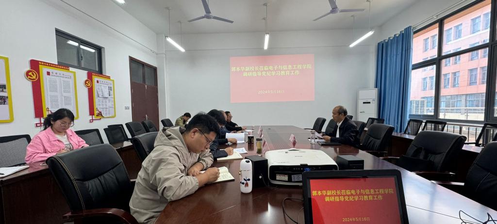 2024年5月16日上午,安顺学院党委委员、副校长郭本华到电子与信息工程学院调研党纪学习教育开展情况。